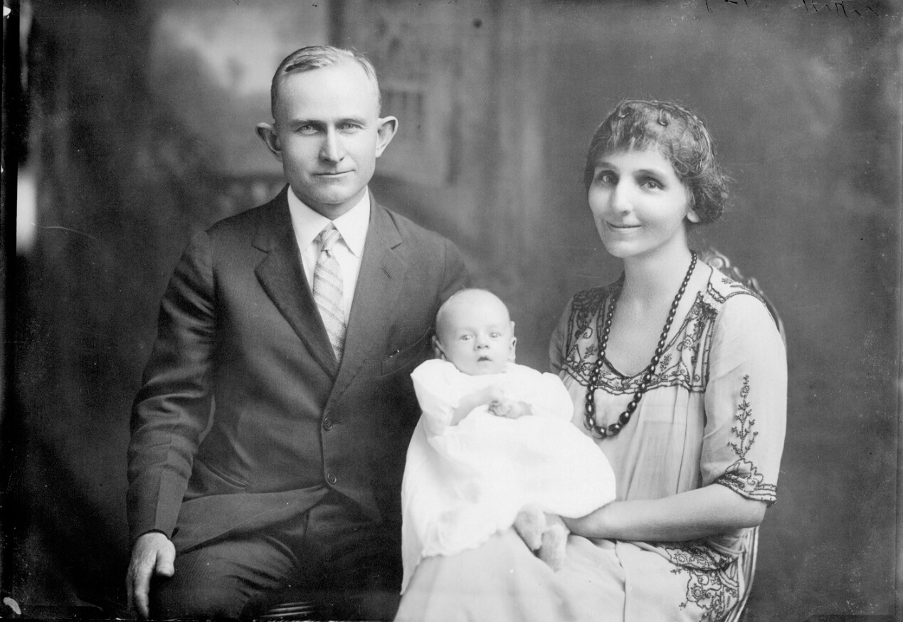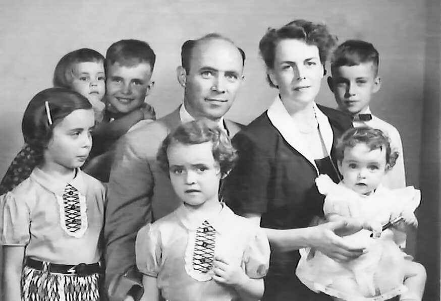 Tunda missionary families: (left) Dr. William Bryant Lewis and Zaidee Nelson Lewis with children; (upper right) Ansil Lynn and Marzie Hall Lynn with their first child; (lower right) Dr. Immanuel Bitsch-Larsen and Valborg Bitsch-Larsen, from Denmark, with their six children. PHOTOS: GENERAL COMMISSION ON ARCHIVES AND HISTORY, MISSION ALBUMS, PORTRAITS.