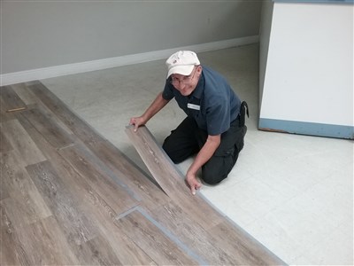 | Gary Verdino, FL, putting new floor at Community UMC, Casselberry |