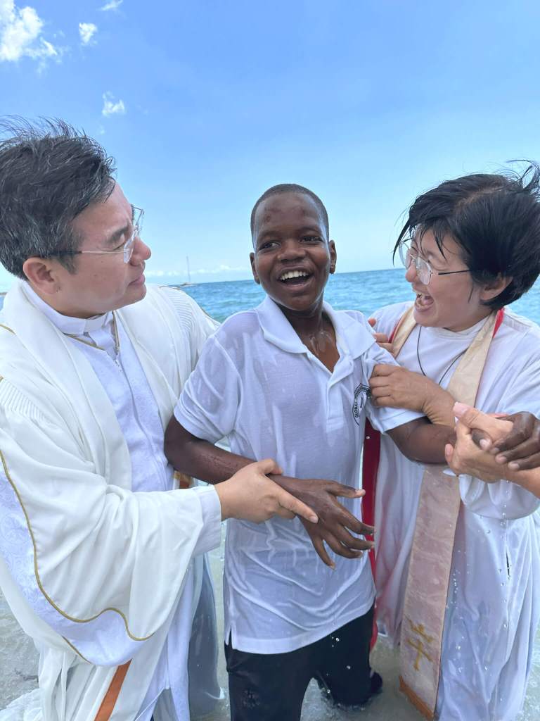 In 2022, I baptized seven students in the beautiful Indian Ocean, which was an awesome experience. In 2023, we baptized 16 more students at the same place when Rev. Jo and his team were here in September.