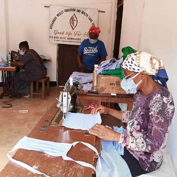 As the situation with COVID-19 continues to evolve in Tanzania, Suzannah Wesley Training Center is working hard at creating a supportive space of healing for hundreds of people around Morogoro, which is about 150 miles west of the capital, Dar El Salaam. As of mid-May, we have sewn and distributed 300 face masks to elders and another 150 to the Masai community.